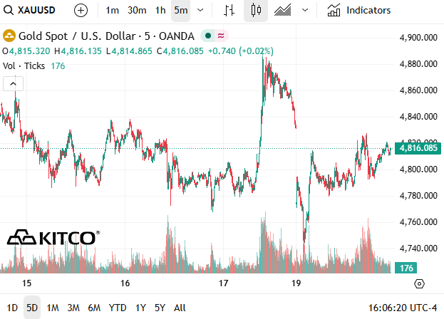 Ropa se posunula zpět nahoru. Brent se vrátil přibližně k 95 dolarům za barel, WTI k 89. Ještě důležitější byl ale pohyb zlata. To samo o sobě nepřekvapilo. Mnohem zajímavější byl vývoj zlata. Místo dalšího růstu oslabilo a spotová cena spadla zhruba k 4 810 dolarům za unci. Stříbro se stáhlo pod 80 dolarů.